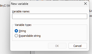 Throw down a right click inside the boxes of either the User or System depending on your need to add variable.