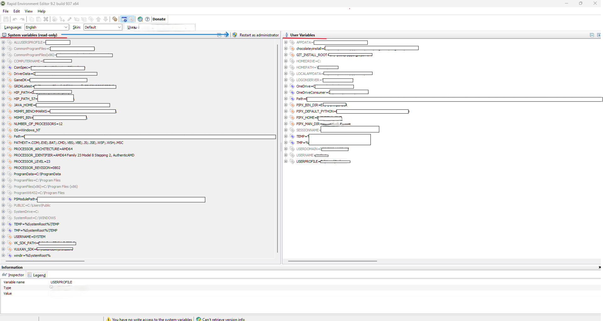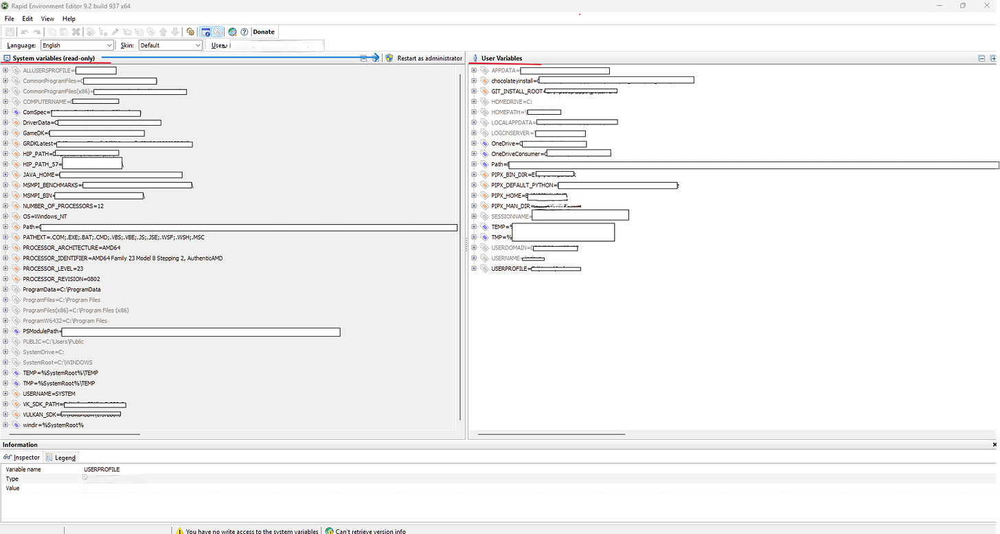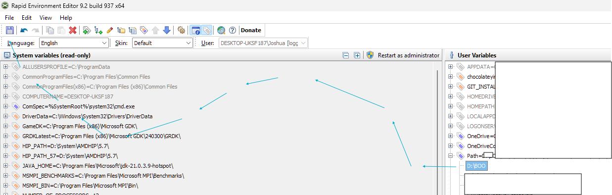 The best part about the application is it’s almost entirely self explanatory. On the left is your system variables. On the right is your currently logged in user variables.